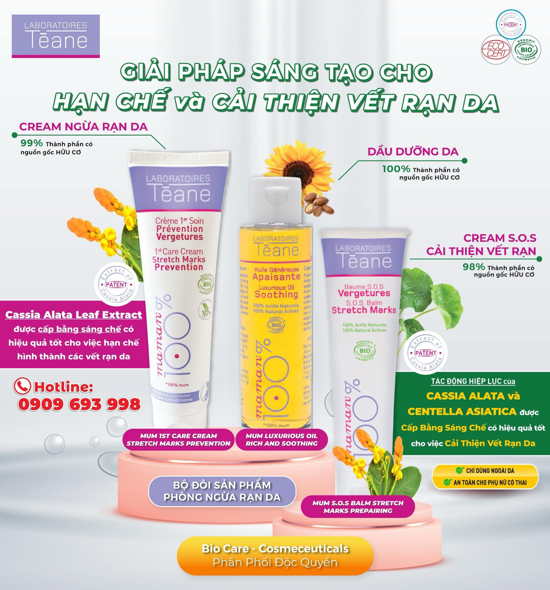 CÔNG TY TNHH DƯỢC MỸ PHẨM BIO-CARE chuyên phân phối độc quyền các sản phẩm chăm sóc da hữu cơ cho mẹ và bé đến từ thương hiệu Laboratoires Téane của Pháp.