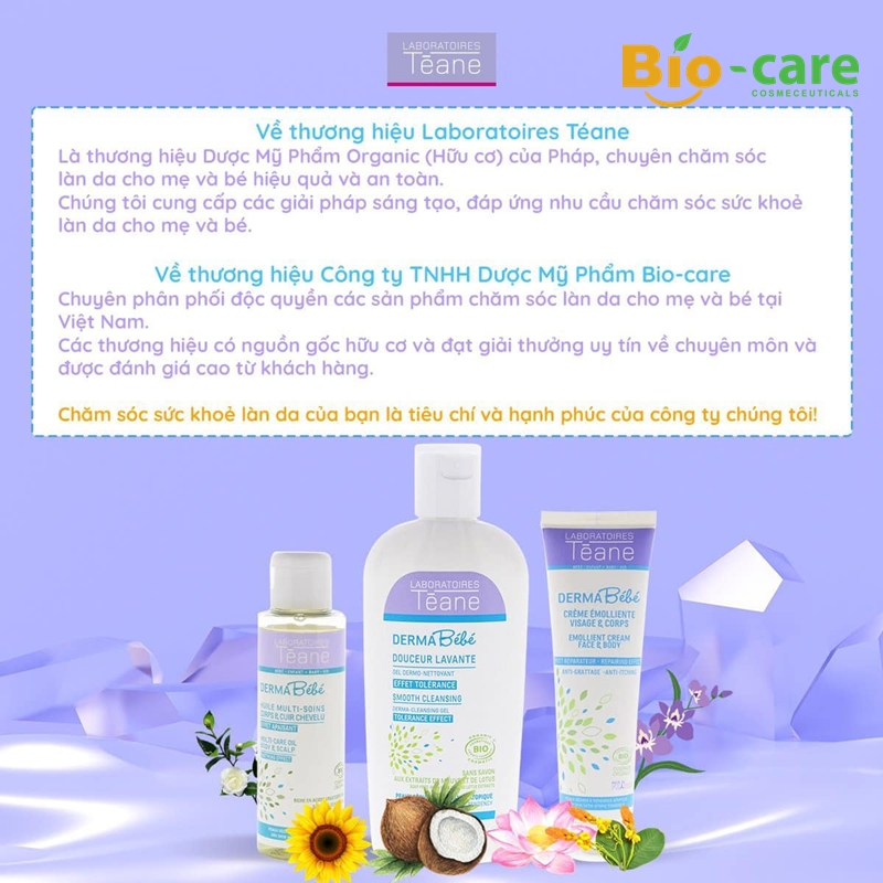 CÔNG TY TNHH DƯỢC MỸ PHẨM BIO-CARE chuyên phân phối độc quyền các sản phẩm chăm sóc da hữu cơ cho mẹ và bé đến từ thương hiệu Laboratoires Téane của Pháp.